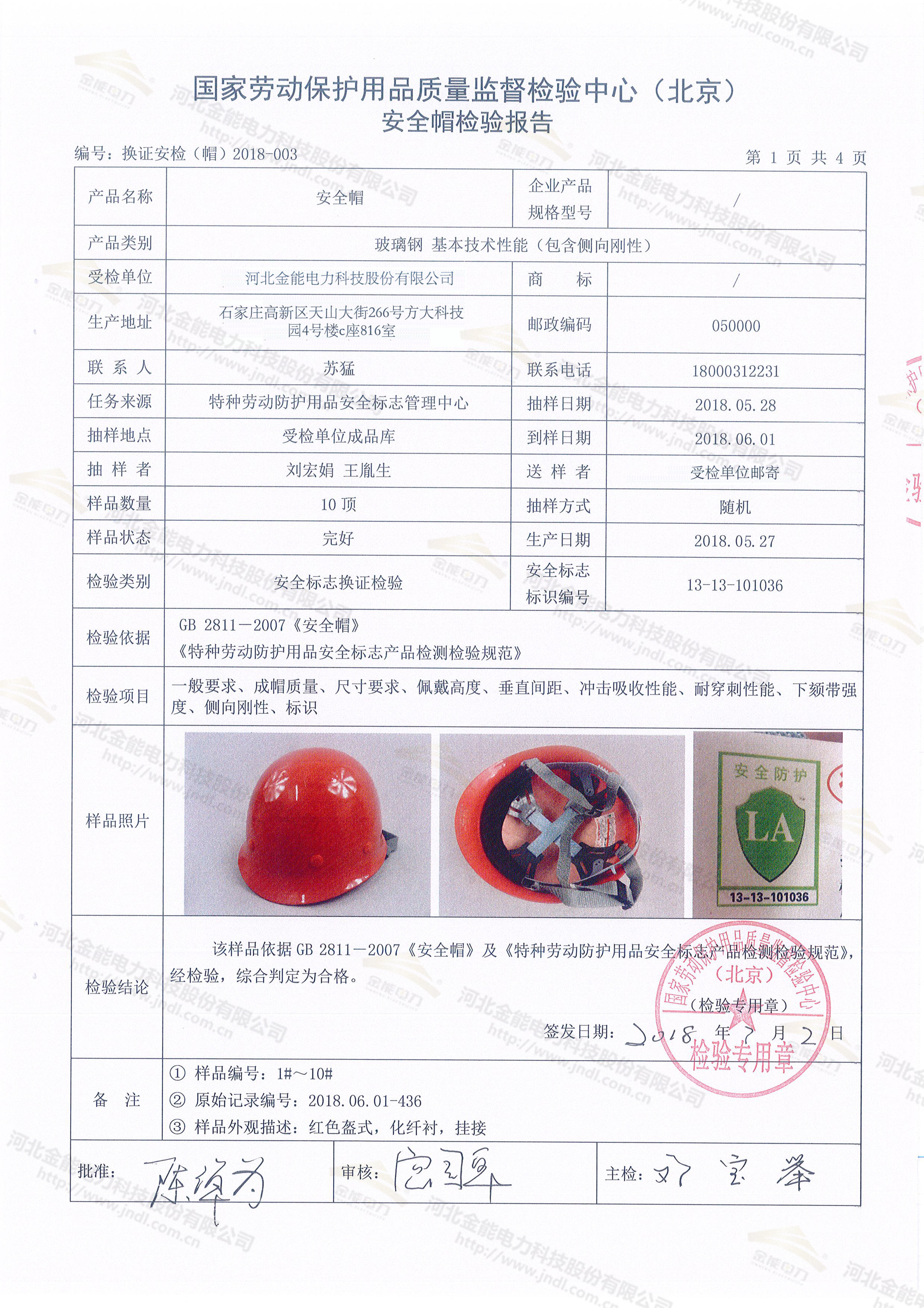 玻璃鋼安全帽檢測報(bào)告