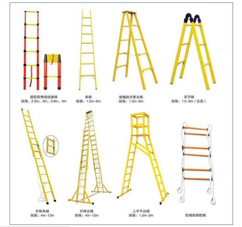 絕緣梯分為絕緣?mèng)~竿梯、絕緣人字梯、絕緣抱桿梯、絕緣懸掛梯、絕緣關(guān)節(jié)梯、絕緣升降合梯、絕緣升降單梯、絕緣升降合梯、絕緣合梯、絕緣伸縮梯等等。