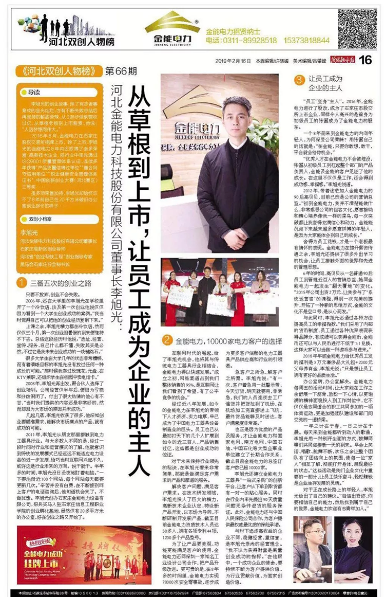 “員工”變身“主人”。2016年,金能電力進(jìn)行了股改,成為了石家莊市股交所上市企業(yè),同樣令人高興的是曾身為初級(jí)員工的張雷成為了金能電力的股東。