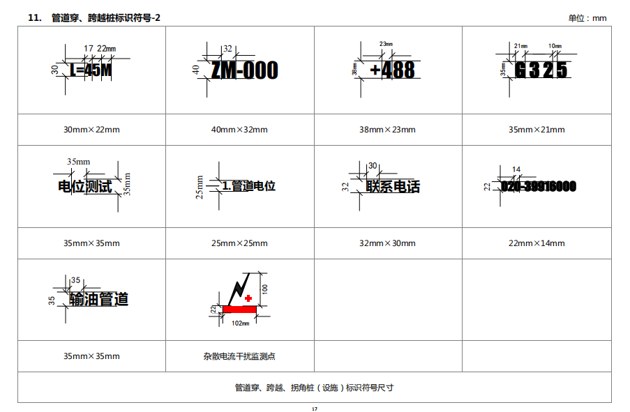 6. 管道穿、跨越樁標(biāo)識內(nèi)容