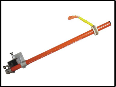 本產(chǎn)品針對(duì)110kv刀閘的通用安裝結(jié)構(gòu)而設(shè)計(jì),它用做110kv刀閘檢修專用防護(hù)架,檢修工人作業(yè)時(shí)隨身攜帶,將其卡緊在110kv刀閘的固定槽鋼上,作為安全帶固定點(diǎn)。采用本產(chǎn)品可摒棄將絕緣子作為安全帶固定點(diǎn)的習(xí)慣做法,消除安全隱患,避免事故發(fā)生。