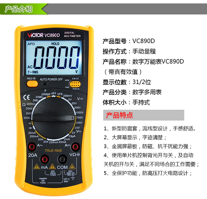 勝利數(shù)字萬(wàn)能表vc890D