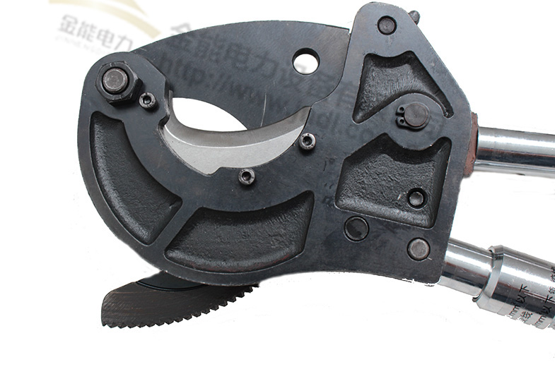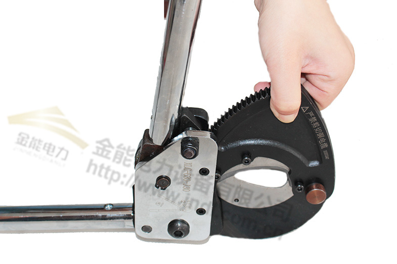 3,按照步驟2方法,打開動(dòng)刀片,卡住電纜侯,合上動(dòng)刀片,連續(xù)往復(fù)抬壓動(dòng)手柄,直至電纜剪斷,